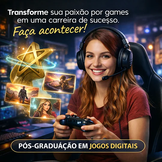 Capacitar o profissional a projetar, desenvolver e gerenciar a produção de jogos digitais. O foco é integrar as competências criativas (design) e técnicas (programação, arte) para a criação de experiências interativas engajadoras para entretenimento, educação ou treinamento.